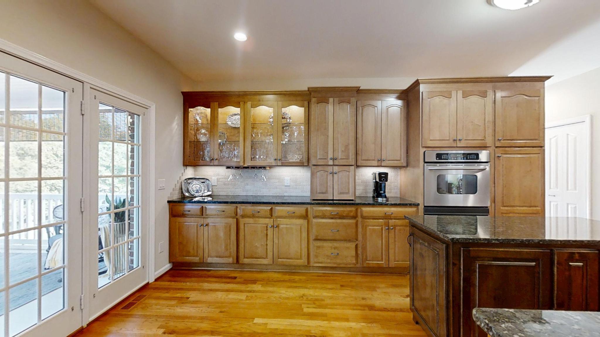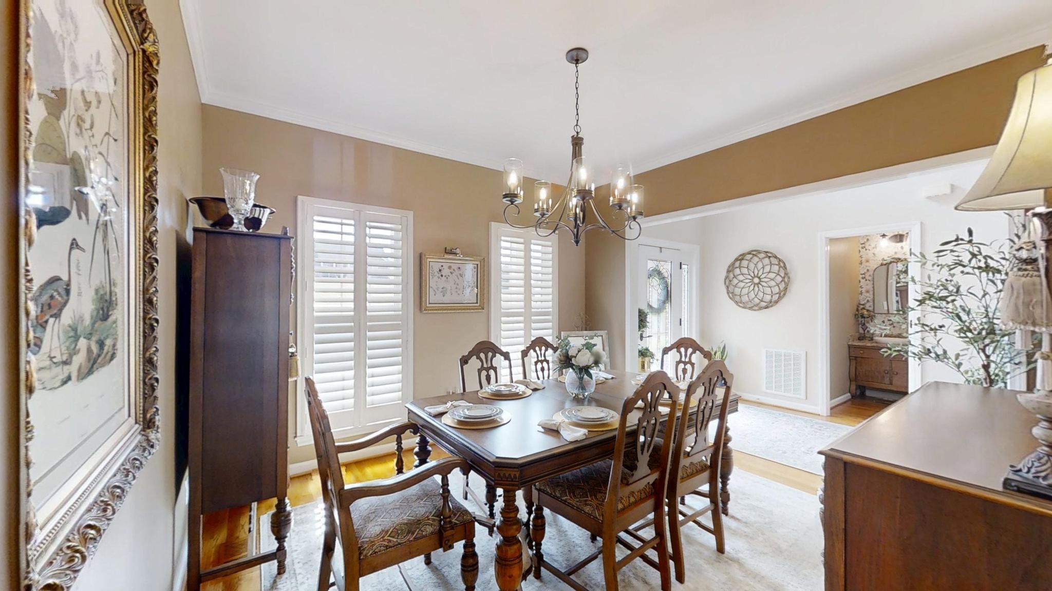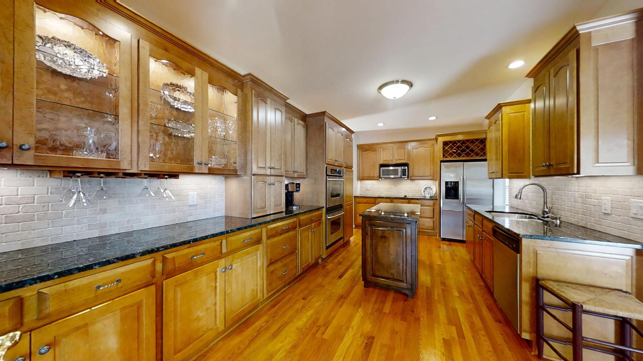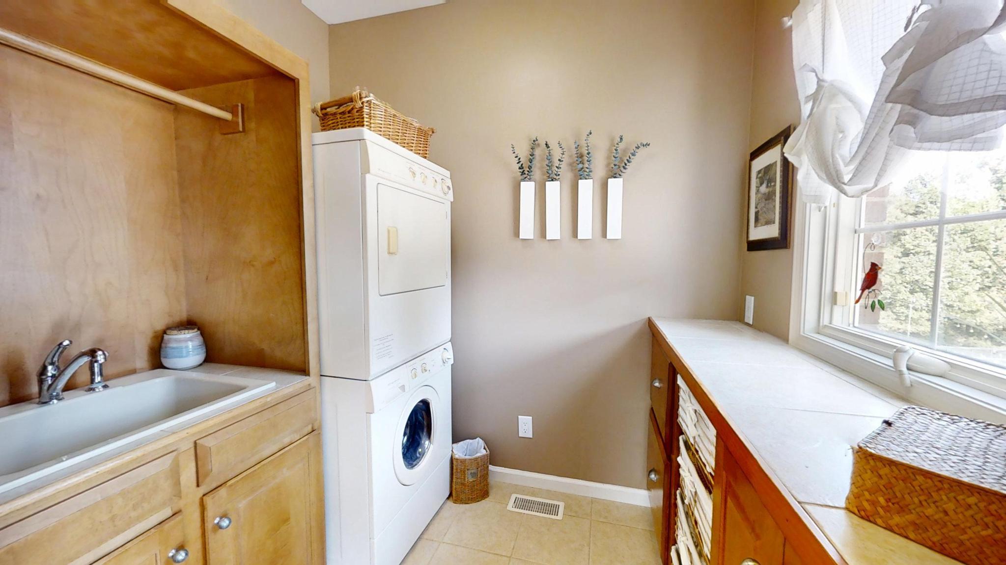 Inside, it’s the thoughtful details that quietly elevate the experience of living here. Custom built-ins with rippled-glass fronts add character to the main living space, while detailed moldings and a gas fireplace create a warm, inviting focal point. A charming half bath features a 100-year-old antique vanity, bringing a sense of history and craftsmanship into the home. In the kitchen, glass-front cabinetry, a built-in wine rack, and smart storage solutions blend beauty with everyday function. Even the laundry room reflects intentional design, with custom cabinetry and workspace that keeps life organized. These are the kinds of details that aren’t always expected—but are appreciated every single day.